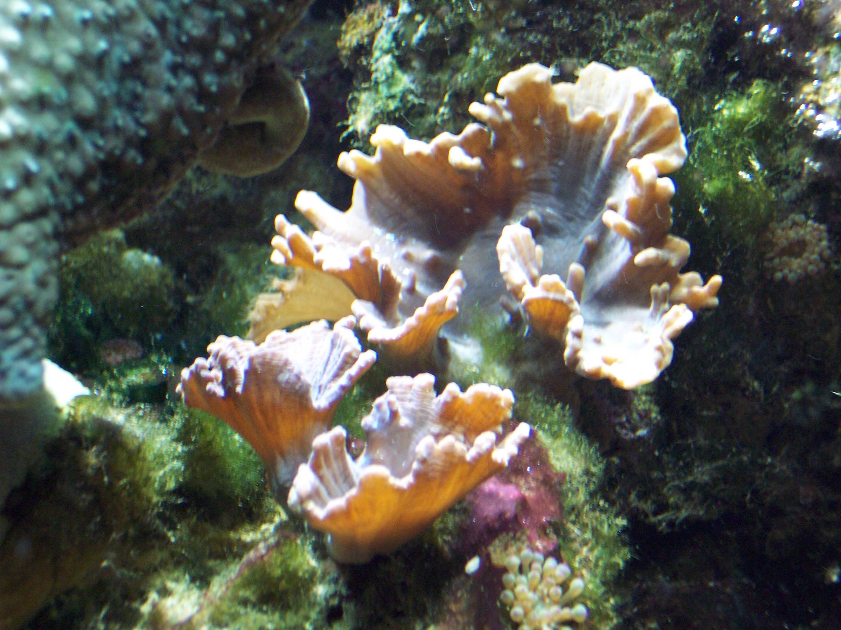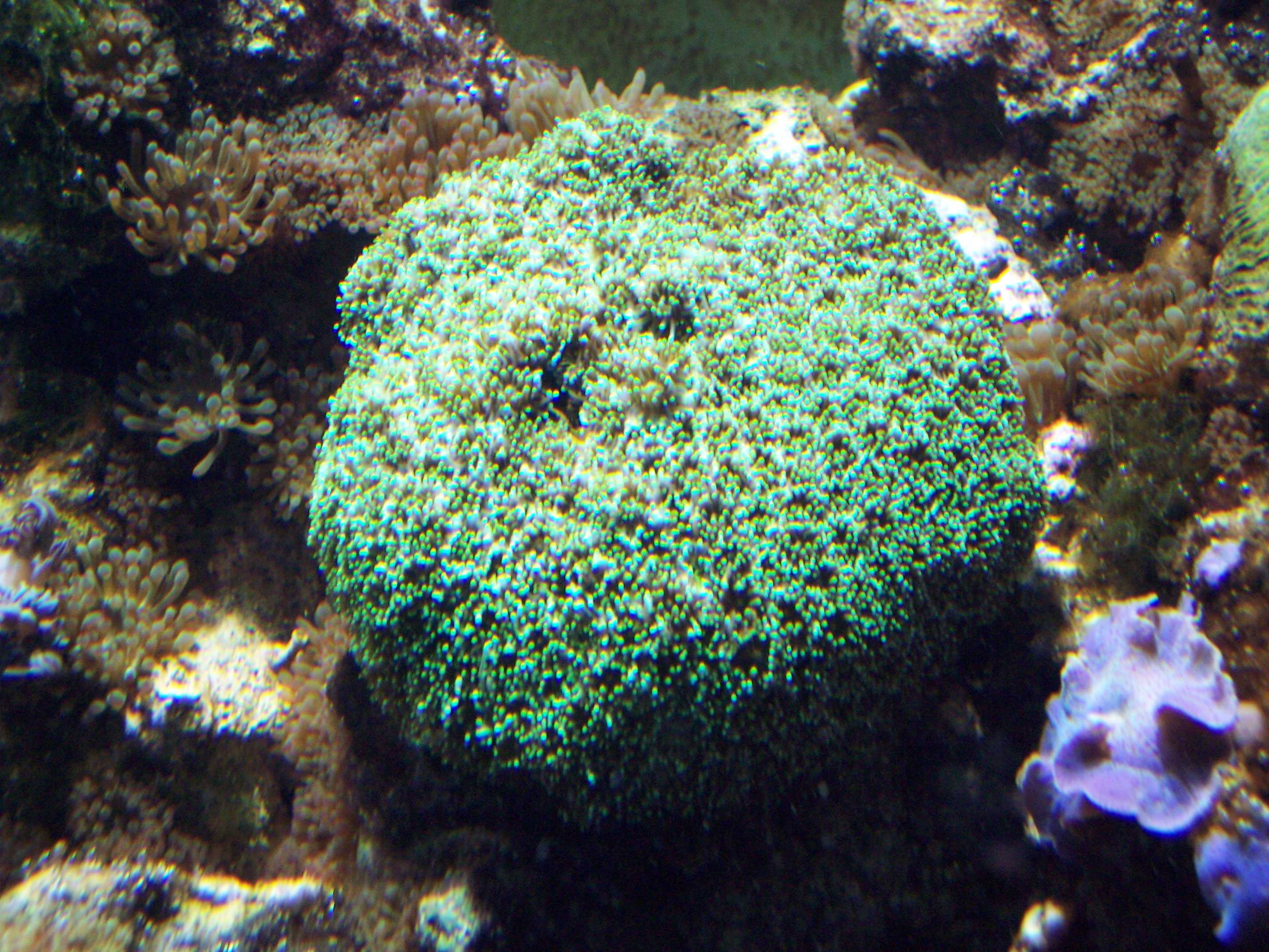 histrix, 1 acropora sp., 2 goniastreas, 1 actinodiscus bleu, 1 actinodiscus