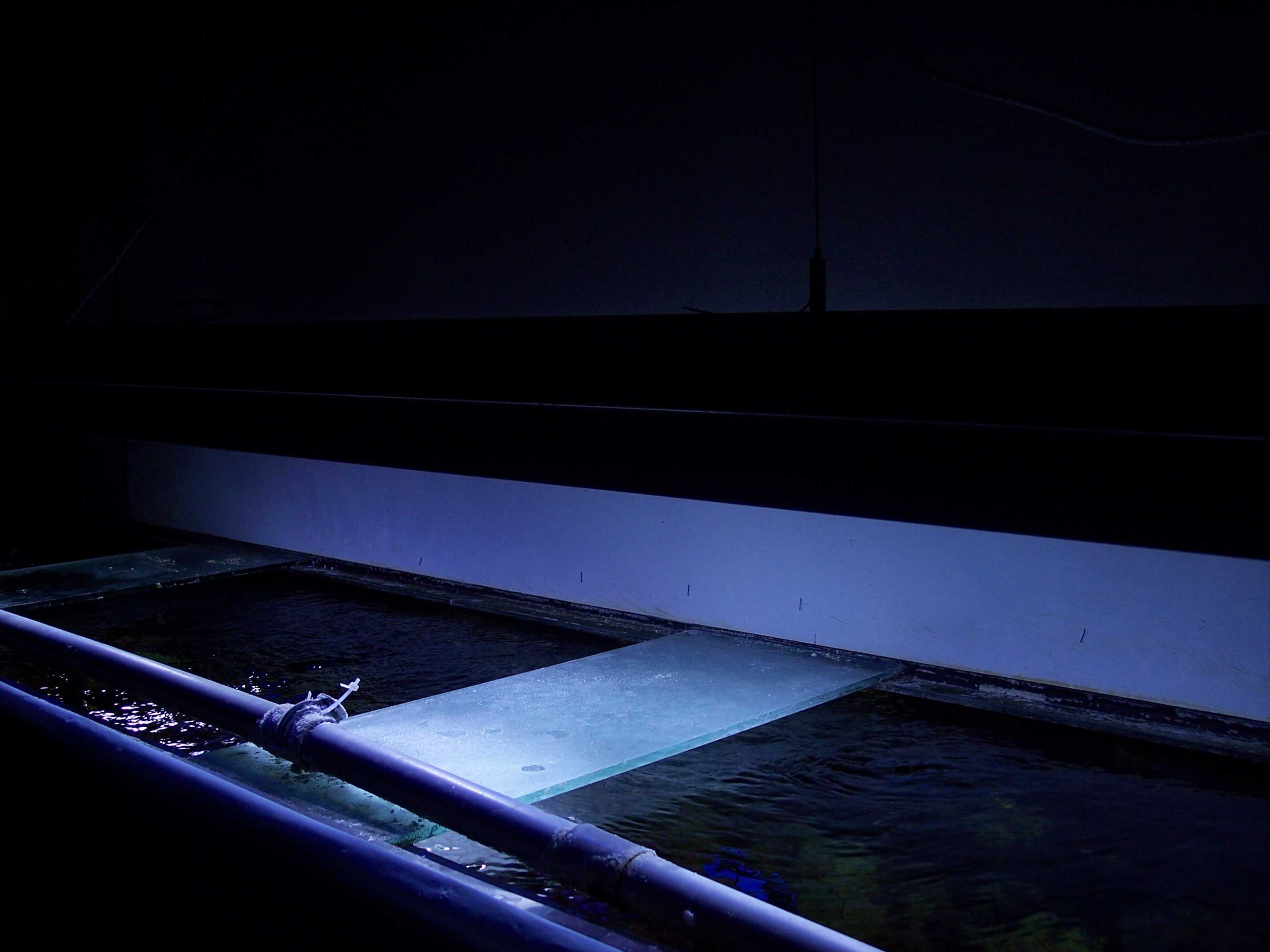 cuve de décantation.(le spot HQL servira pour une culture d'algues dans la décantation,