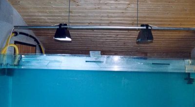 hauteur des spots. Ici 2 spots HQI de 250 watts, un troisième sera rajouté