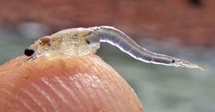 Une crevette Mysis.(larve de crevette)