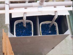 "filtres fluidisé" remplis de Biopellets (granulés en polymère biodégradable,