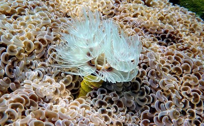 Certains autres vers vivent en symbiose avec les coraux, ils vivent la plupart du temps sur un corail nommé :'porites'.