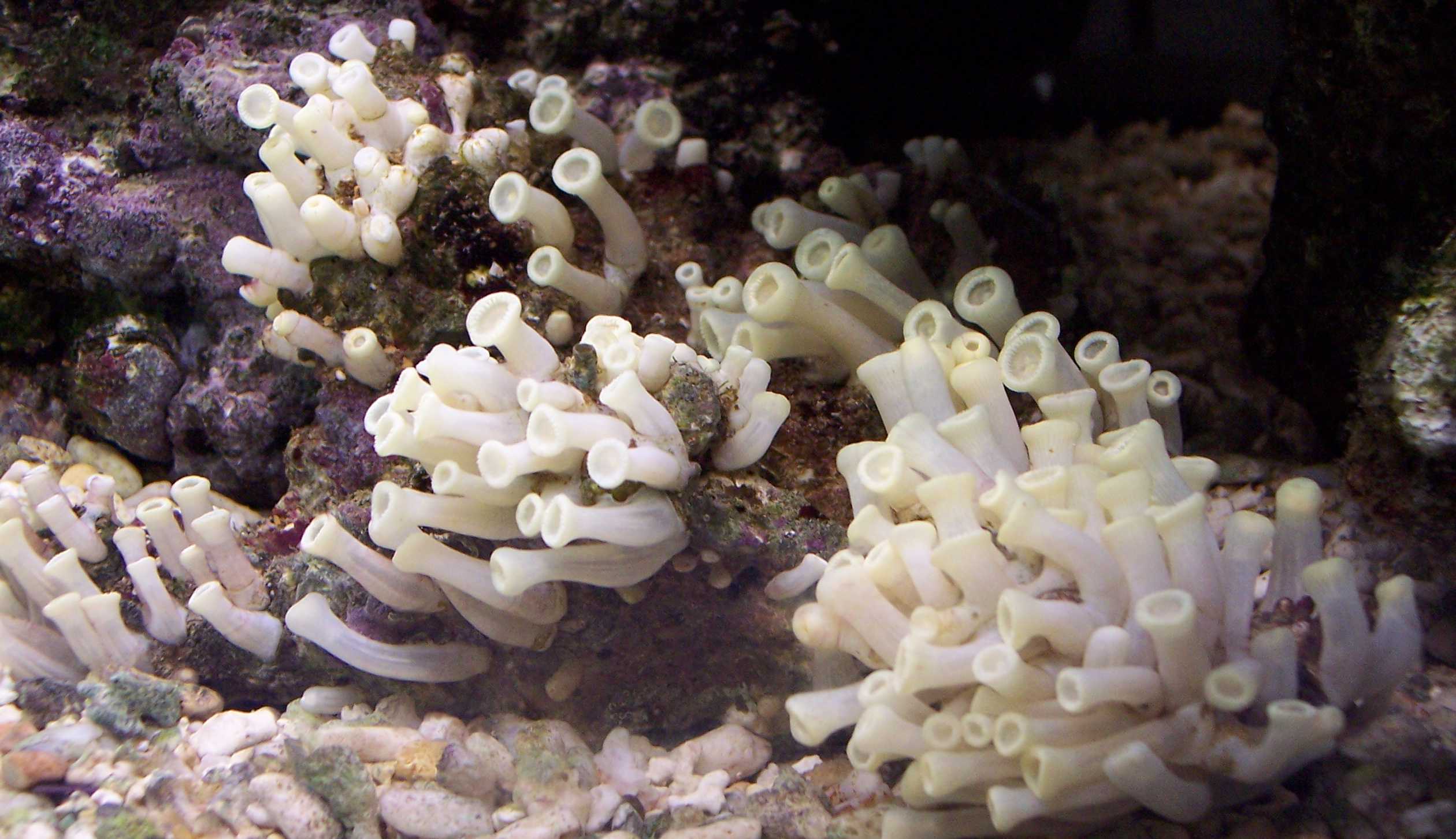 suite à un stress(par exemple) perd ses zooxanthelles et devient blanc ! L'origine est encore méconnue, il s'agirait soit d'une bactérie, soit d'une augmentation (ou diminution) de la température, soit une surdose de rayons ultra-violet. Il semblerait que le manque d'iode favorise aussi l'apparition de la maladie.( à démontrer...)